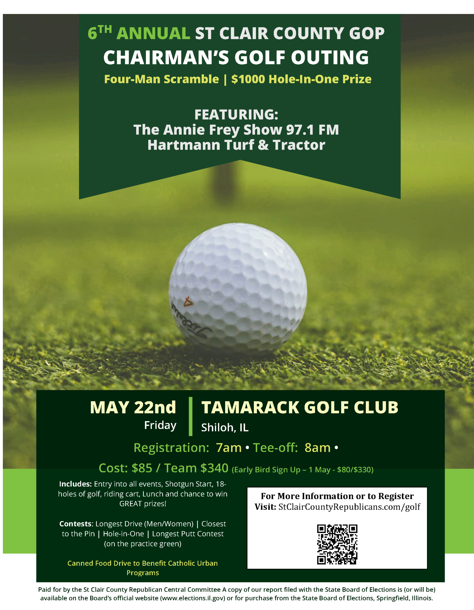 6th Annual St. Clair County GOPChairman's Golf Outing Four-Man Scramble | $1000 Hole-In-One Prize Featuring: The Annie Frey Show (97.1FM) and Hartmann Turf and Tractor Friday, May 22ndRegistration: 7AM | […]
